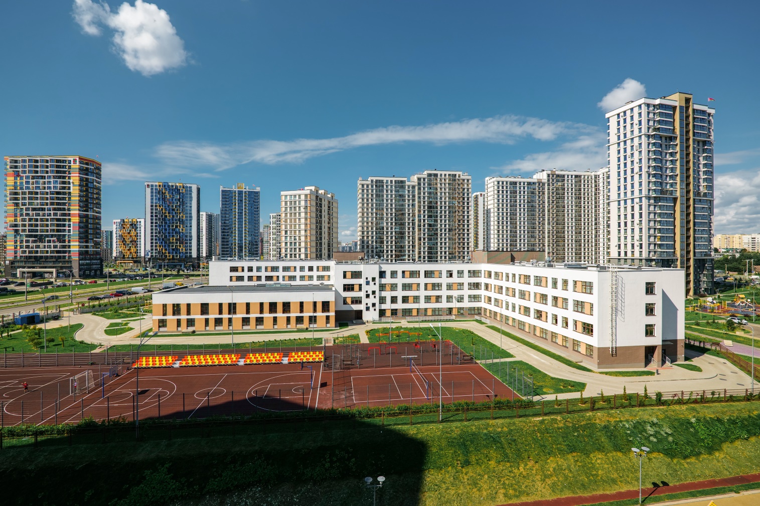 В комплексе современные, светлые и отлично оснащённые школы с обширными прилегающими территориями для всестороннего развития малышей и тинейджеров. Уроки начались в новой школе №227 в квартале «Мировые танцы» (ул. Николы Теслы, 3).